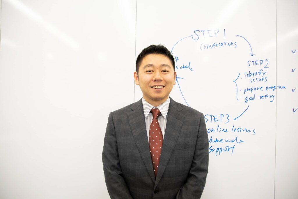 そして、日本に帰国したときに日本語オンラインスクール合同会社という会社を設立しました。教室型スクールでは多くの外国人に日本語を教えるのが難しいと思い、オンラインスクールを思いつきました。当時、主流であったテレビ電話のスカイプを活用し、外国人に日本語を教える体制を整えました。